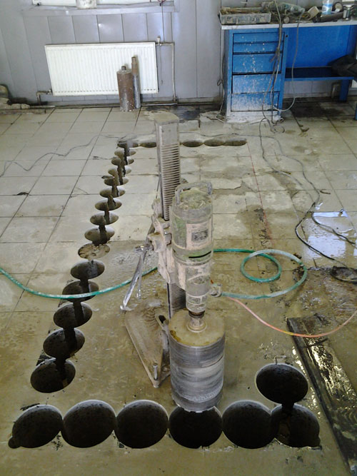 Изготовление смотровой ямы размером 3000х1200 мм, в бетонном полу глубиной 35 сантиметров, методом алмазного бурения в автотехцентре "Захарово" г. Голицино.