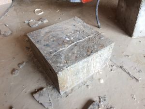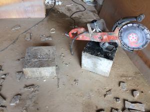 Скалывание. После того как «слайсы» были нарезаны, в ход пошел гидравлический клин или просто мощный перфоратор в режиме отбойника. Благодаря прорезям, бетон скалывался аккуратно, кусками, не создавая ударной волны на всю конструкцию.
