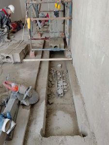 Сначала прошлись ручным резчиком Husqvarna K 4000 Wet на глубину 120 мм.
