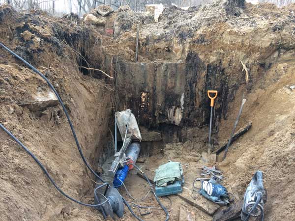 Крепление установки алмазного бурения к стене коллектора, бурение алмазной коронкой ⌀180мм