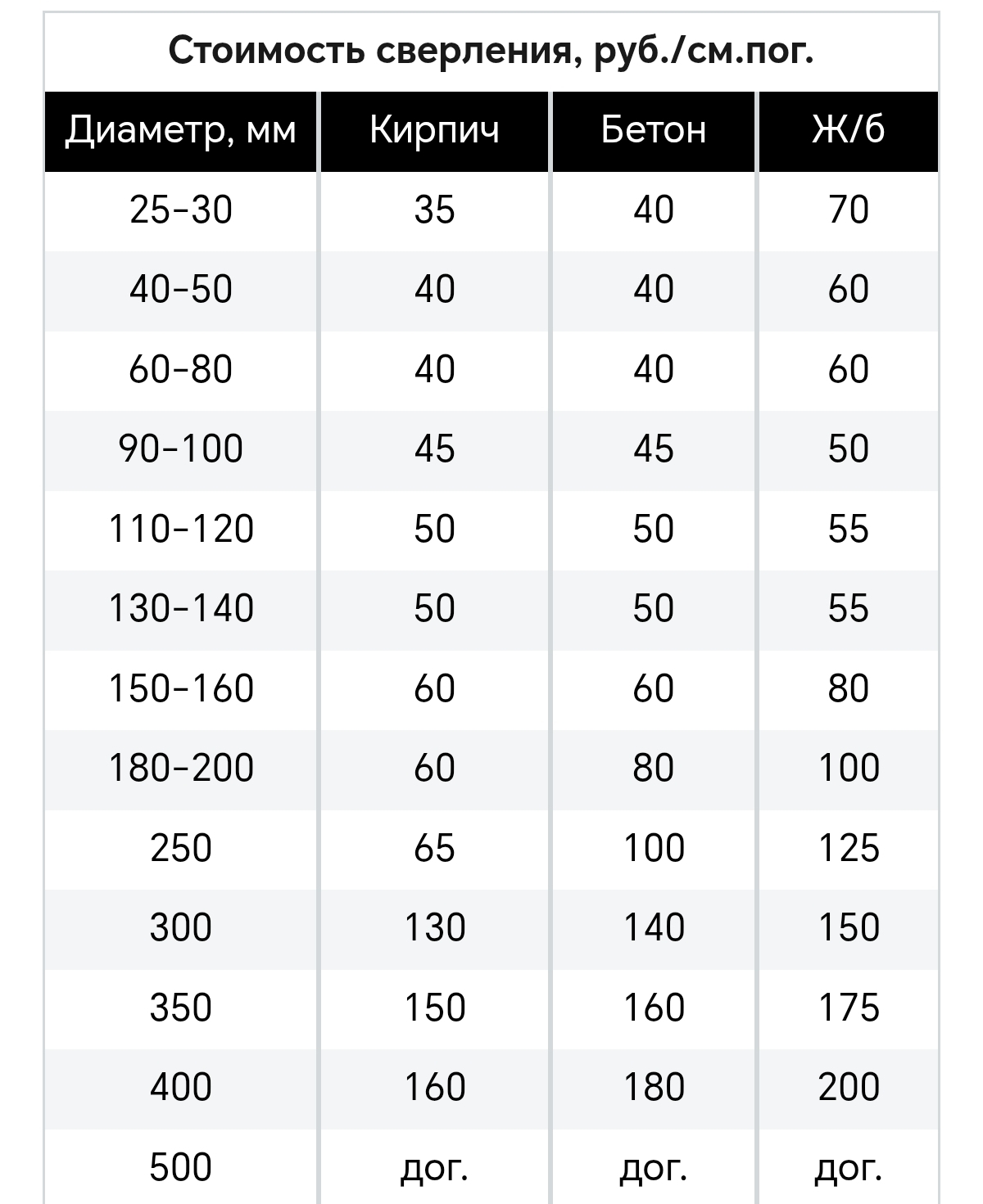 от 1000 руб. - минимальная стоимость одного отверстия